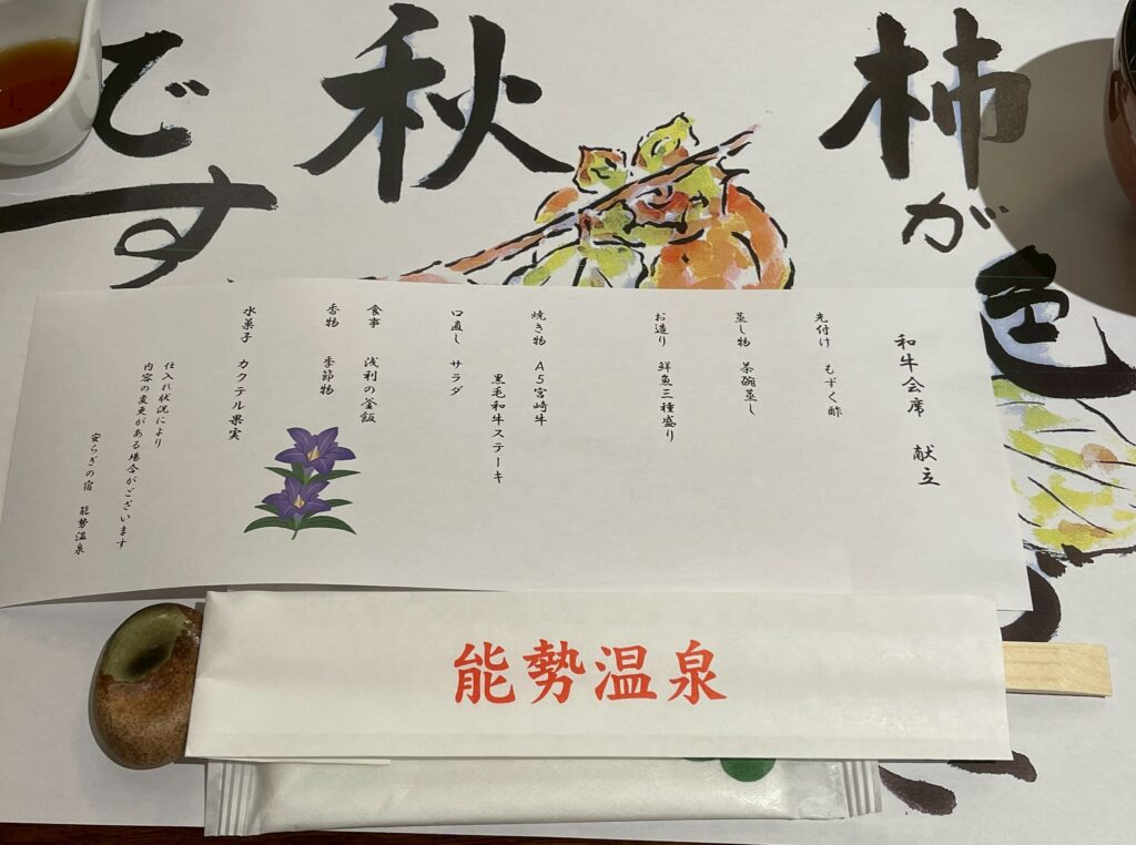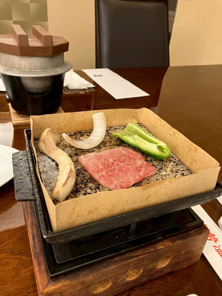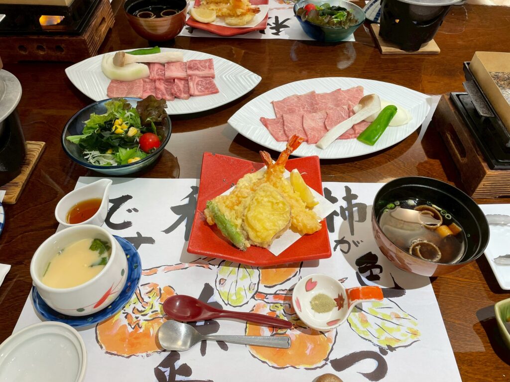 私たちは夜ご飯として、「A5黒毛和牛会席」をいただきました。