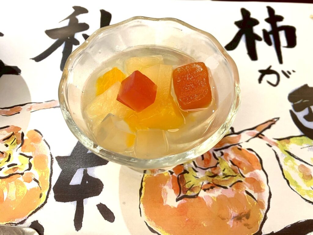 最後に水菓子(カクテル果実)もいただいて、大満足で食事を終えました。